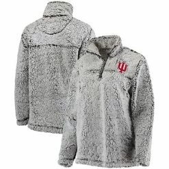 Promo ❤️ Unbranded 👩 Women’s Gray Indiana Hoosiers Sherpa Super Soft Quarter-Zip Pullover Jacket 🔔