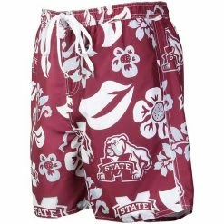 Coupon 🌟 Unbranded Men’s Wes & Willy Crimson Indiana Hoosiers Floral Volley Logo Swim Trunks 🛒