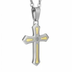 Brand new 🎉 Unbranded Men’s Two Tone 10k Gold Over Stainless Steel Diamond Accent Cross Pendant 🥰