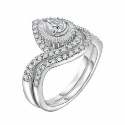 Outlet 😉 Unbranded 14k White Gold 1 Carat T.W. Diamond Teardrop Halo Engagement Ring Set 🎁