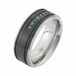 Best deal 🎁 Unbranded 1/6 Carat T.W. Blue Diamond Two Tone Stainless Steel Wedding Band – Men ❤️