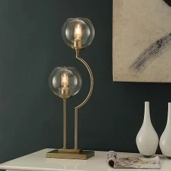 Coupon 👍 Unbranded Two Steel Brass Poles With Clear Glass Globe Up Lights 🔔