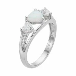Best Pirce 💯 Unbranded Sterling Silver Lab-Created Opal & White Sapphire Triple Heart Ring 💯
