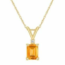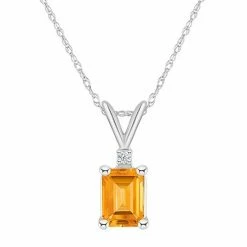 Adorned with an emerald-cut citrine center stone, and a dazzling diamond accent, this eye-catching pendant completes your elegant look.