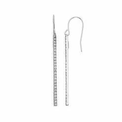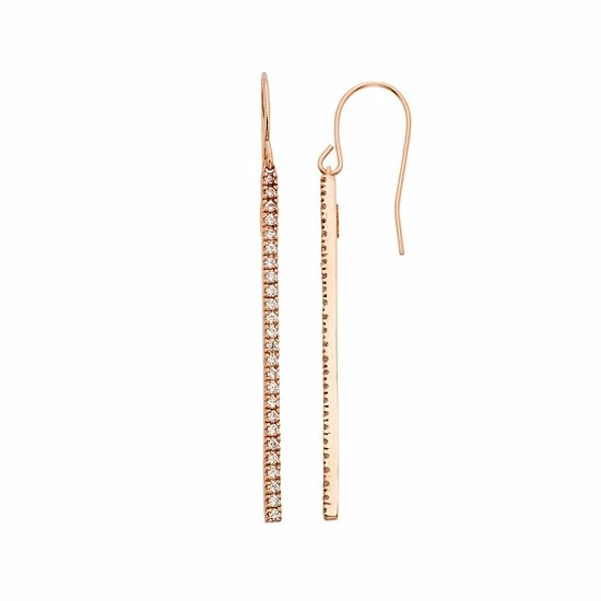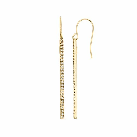 A row of illuminating round-cut diamonds makes these 10k gold stick drop earrings an exquisite pair.