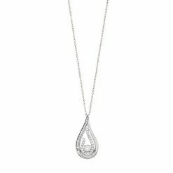 Dazzling with round-cut diamonds, this stunning teardrop pendant is a beautiful complement to your look.