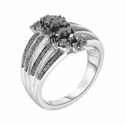 Shimmering with round-cut black diamonds and an alluring split-shank design, this sterling silver ring makes a captivating choice.