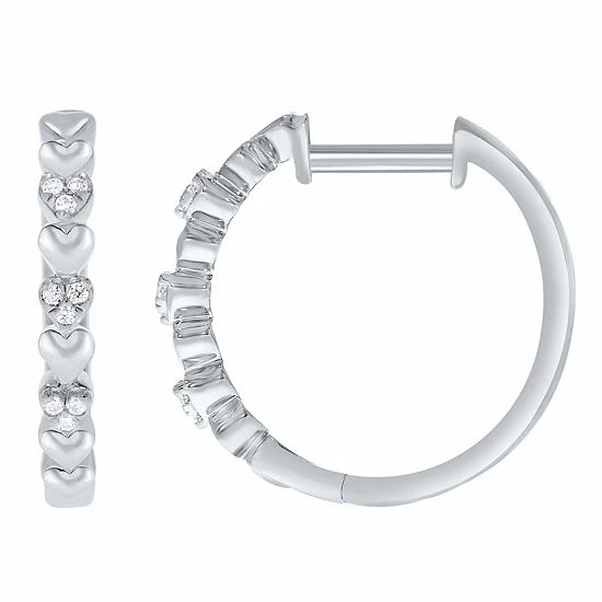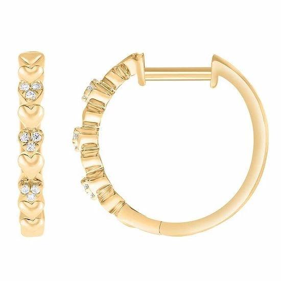 With genuine diamonds and a romantic heart motif, these 10k gold hoop earrings are the sparkling final touch on your glamorous look.