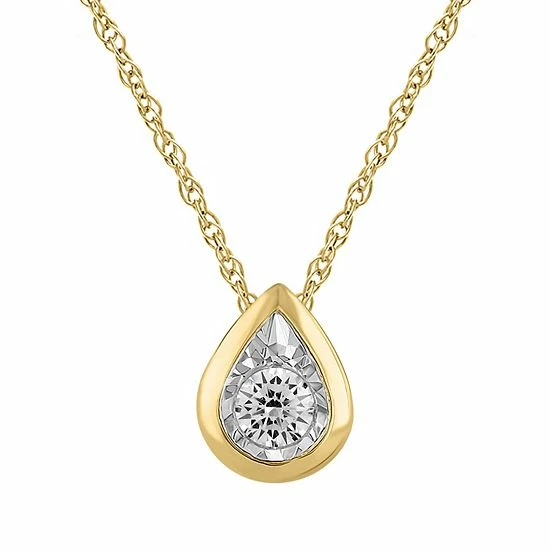Shimmering from every angle, this 10k gold and diamond teardrop pendant is simply enchanting.