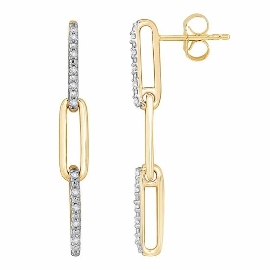 These 10k gold 1/10 carat diamond triple paperclip drop earrings will be your new favorite pair.
