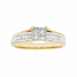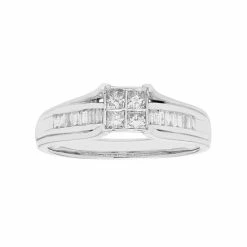 Signify your everlasting love when you propose with this 10k gold engagement ring. Featuring a square cluster of princess-cut diamonds and baguette-cut diamonds along the band, this engagement ring is sure to be admired.