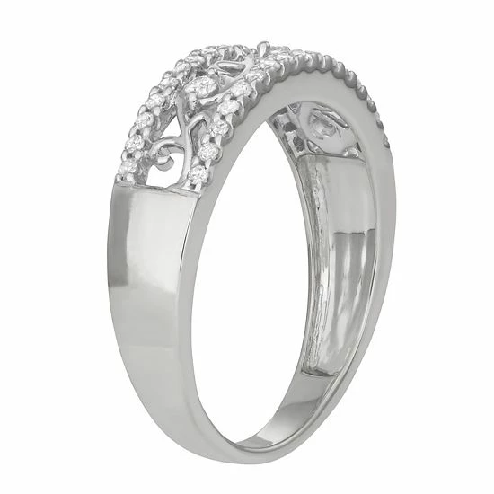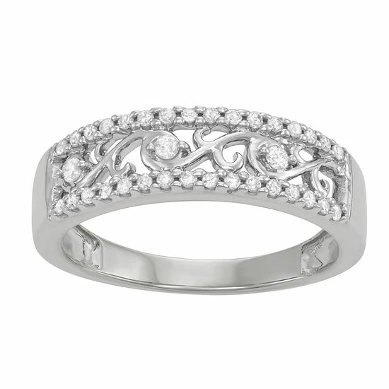 Elegant floral filigree and dazzling round-cut diamonds make this 10k gold ring a breathtaking accent to your look.