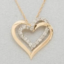 You’ll cherish this exquisite 10k gold diamond double-heart pendant.