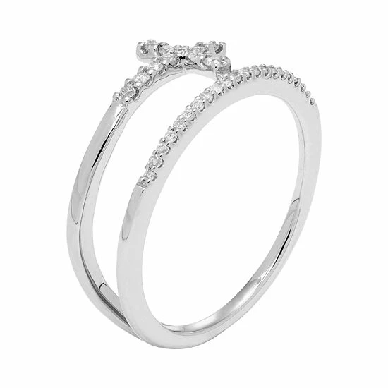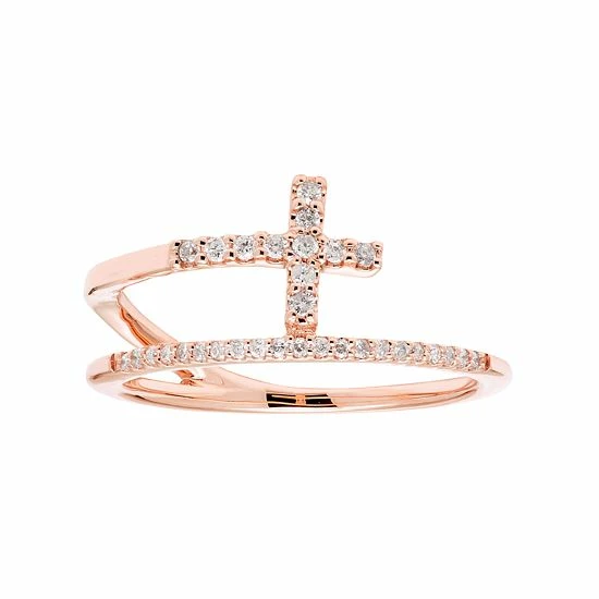 Decorated with sparkling round-cut diamonds, this 10k gold cross ring exudes a divine look.