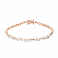 Lined from end to end with sparkling diamonds, this 10k gold tennis bracelet captivates from every direction.