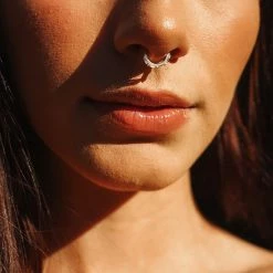 Turn heads with this 10k gold cubic zirconia clicker nose ring.