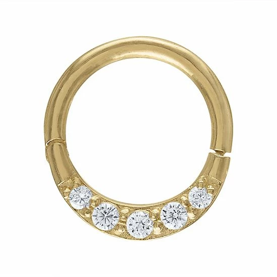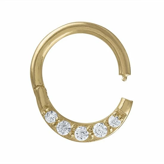 Turn heads with this 10k gold cubic zirconia clicker nose ring.