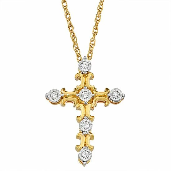 Discover the divine style of this 10k gold cross pendant necklace with diamond accents.