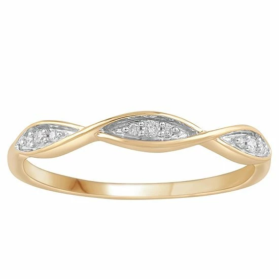 Featuring a series of gorgeous diamond accents, this 10k gold twist band ring is a must-add to your fine jewelry collection.