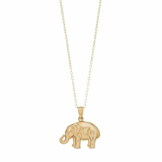 Add a delightful touch to your outfit when you wear this glowing 10k gold elephant necklace.