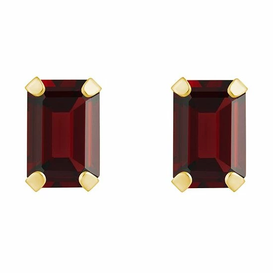 Complete your look in an eye-catching way with these 10k gold emerald-cut garnet stud earrings.