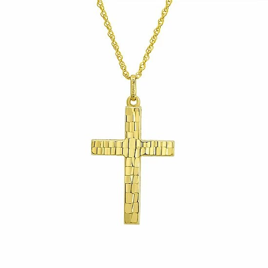 Showcase the strength of your faith with this 10k gold hammered cross pendant necklace.