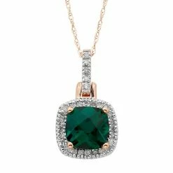 A lab-created emerald gemstone surrounded by shimmering diamonds gives this halo pendant unsurpassed beauty.