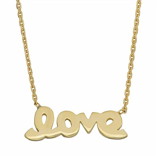 Polished to a brilliant shine, this 10k gold “love” pendant is a charming addition to your look.