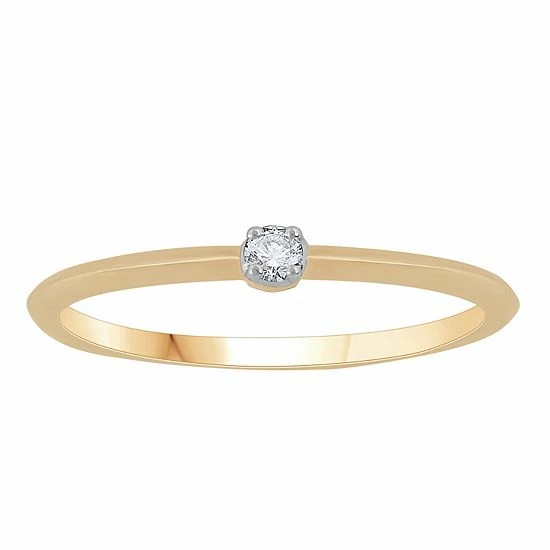Crafted from 10k gold, and featuring a round-cut diamond center stone, this stylish ring is perfect for wearing alone or stacking.