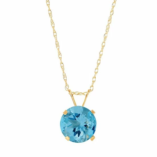 Featuring a Swiss blue topaz solitaire pendant suspended from a stylish rope chain, this 10k gold necklace beautifully complements your look.