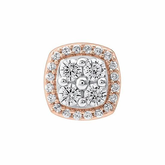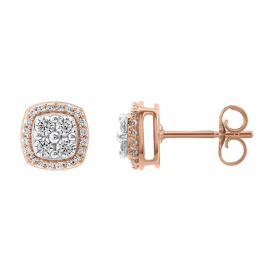 Decorated with shimmering, round-cut diamonds, these 10k rose gold cluster stud earrings lend a touch of sophistication to your look.