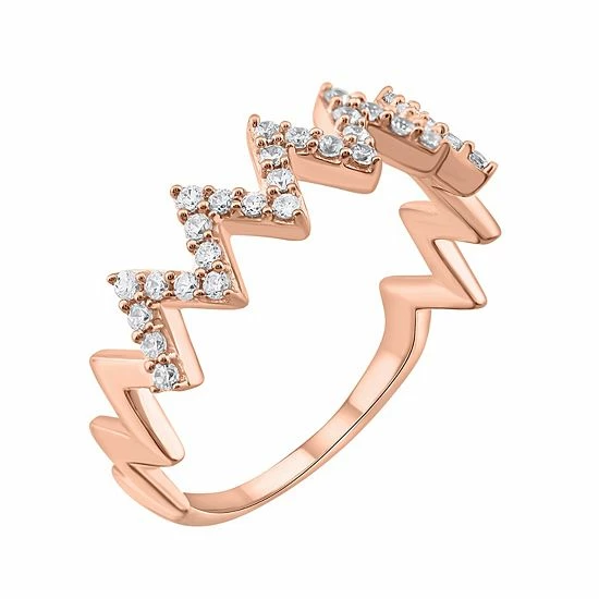 Featuring a zigzag design lined with dazzling diamonds, this 10k rose gold ring is a standout accessory.