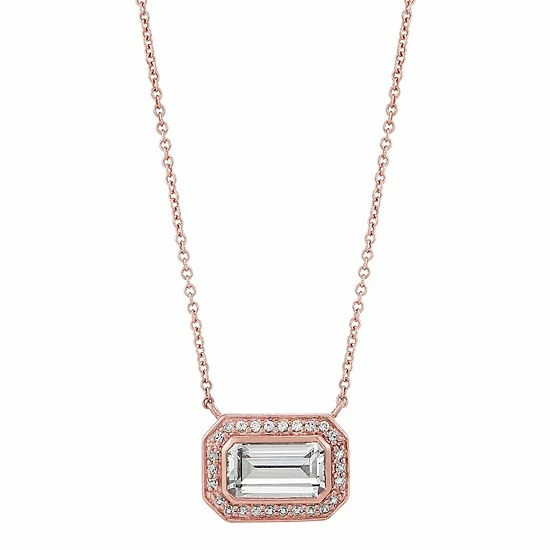 Featuring an emerald-cut, lab-created white sapphire center stone, this 10k rose gold necklace is a beautiful complement to your attire.