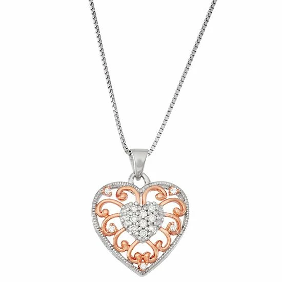 Add some love to any outfit with this gorgeous 10k rose gold over sterling silver diamond heart pendant necklace.