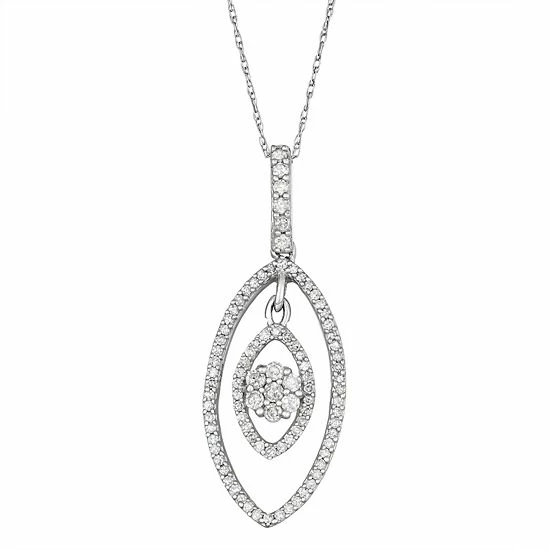 Designed with a double-marquise motif, these 10k white gold drop earrings are a fashionable complement to your attire.