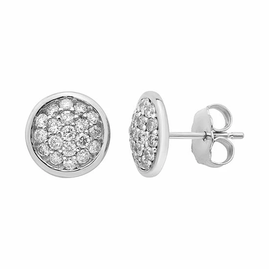 You’ll love the modern flair of these 10k white gold diamond disc stud earrings.