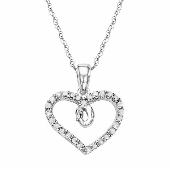 Decorated with shimmering round-cut diamonds, this 10k white gold heart pendant exudes elegance.