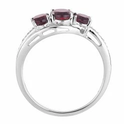 Beautifully decorated with a trio of oval-cut garnets, this 10k white gold 3-stone ring will enhance any ensemble.