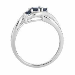 Embellished with round-cut genuine sapphires and diamonds, this 10k white gold three-stone ring is altogether captivating.