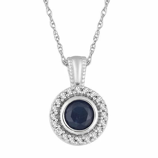 Simple, yet elegant, this 10k white gold sapphire and diamond halo pendant will never go out of style.