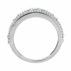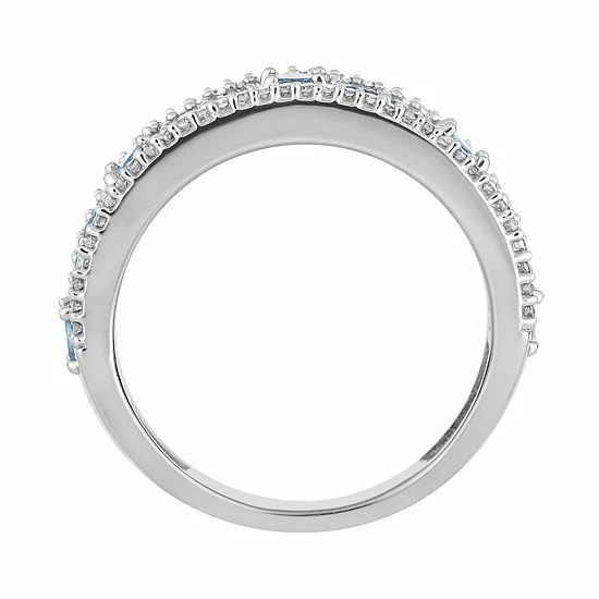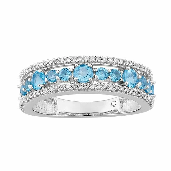 Elegantly appointed with rows of Swiss blue topaz and diamonds, this 10k white gold ring lends a sophisticated touch to your look.