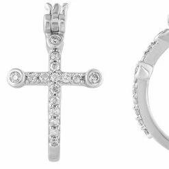 You’ll look stylish with these 10kt white gold 1/4 carat diamond cross hoop earrings.