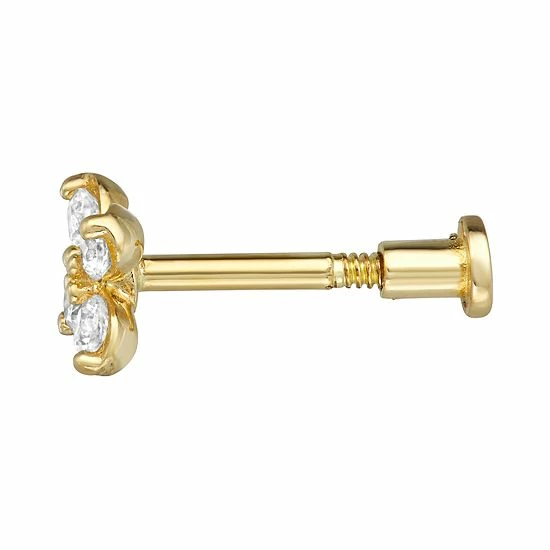 Add a touch of brilliance to your look with this charming 14k gold cubic zirconia flower belly stud.