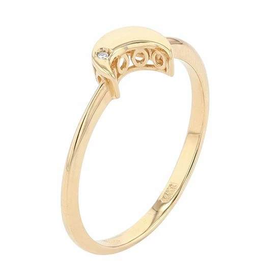 This charming 14k gold moon ring features a scintillating diamond accent for an accessory that’s sure to be a jewelry-collection favorite.