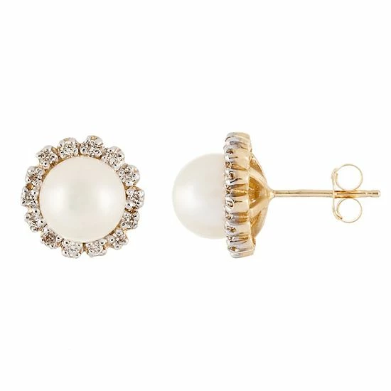Add timeless style to your wardrobe when you don these luminous freshwater cultured pearl and diamond stud earrings.