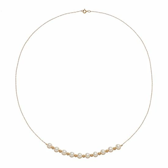 Alternating freshwater cultured pearls and 14k gold beads give this necklace understated elegance.