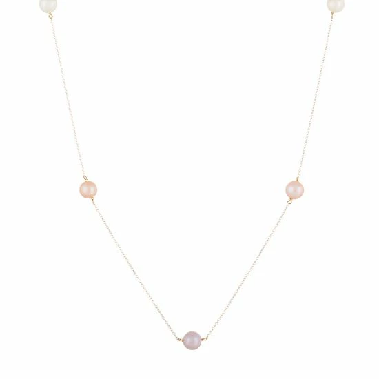 Decorated with shimmering freshwater cultured pearls, this 14k gold station necklace is simply stunning.