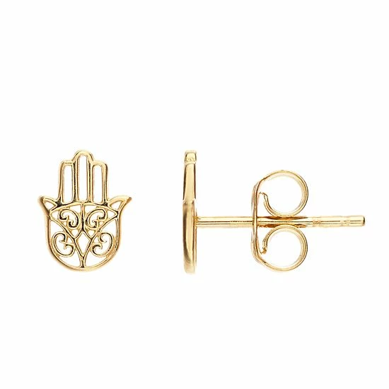 Enchanting beauty is effortless with these glowing 14k gold hamsa earrings.