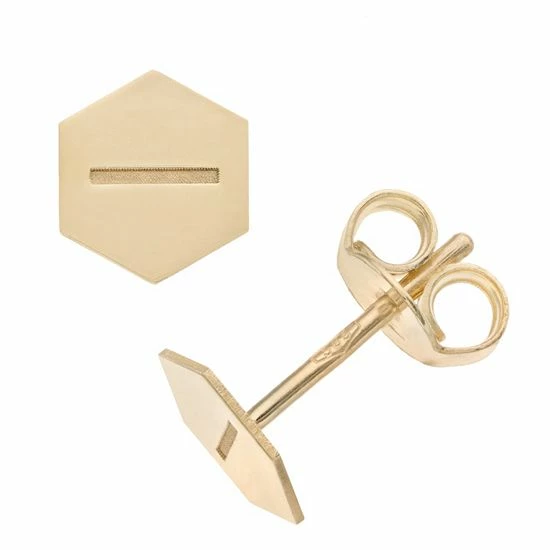 Add a touch of gold to your style with these 14k gold hexagon stud earrings.