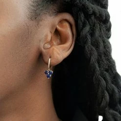 Beautifully decorated with trios of lab-created sapphires, and shimmering diamond accents, these huggie earrings elevate your ensembles.